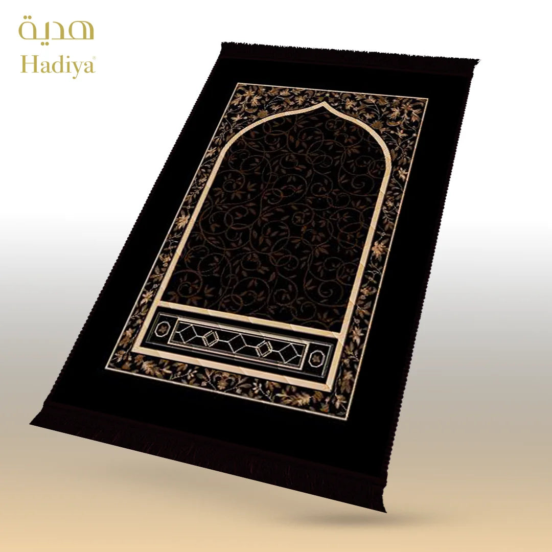 Made with soft and shiny mink fabric, this prayer mat feels smooth during sujood while providing gentle support. The 1-inch quilted padding ensures comfort without extra weight. Its waterproof back helps protect the mat on different surfaces, while the neat lace finishing adds a clean and elegant look.