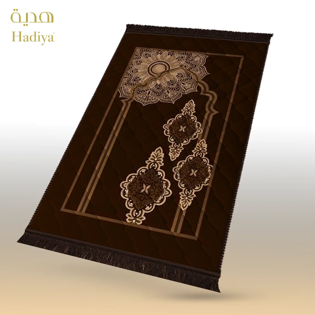 Made with soft and shiny mink fabric, this prayer mat feels smooth during sujood while providing gentle support. The 1-inch quilted padding ensures comfort without extra weight. Its waterproof back helps protect the mat on different surfaces, while the neat lace finishing adds a clean and elegant look.