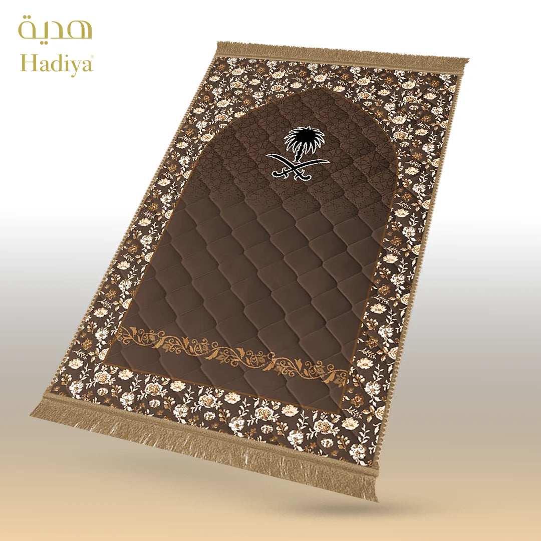 Made with soft and shiny mink fabric, this prayer mat feels smooth during sujood while providing gentle support. The 1-inch quilted padding ensures comfort without extra weight. Its waterproof back helps protect the mat on different surfaces, while the neat lace finishing adds a clean and elegant look.