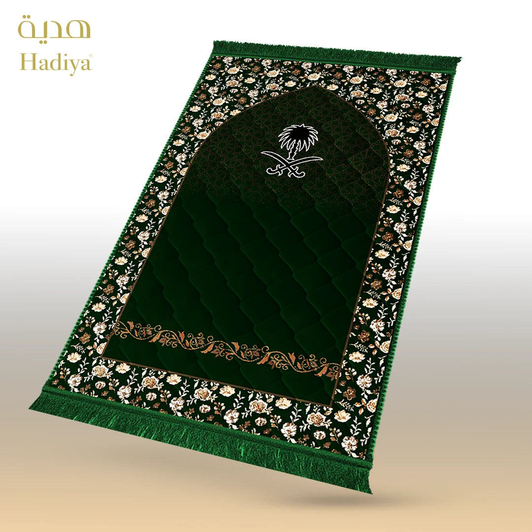Made with soft and shiny mink fabric, this prayer mat feels smooth during sujood while providing gentle support. The 1-inch quilted padding ensures comfort without extra weight. Its waterproof back helps protect the mat on different surfaces, while the neat lace finishing adds a clean and elegant look.