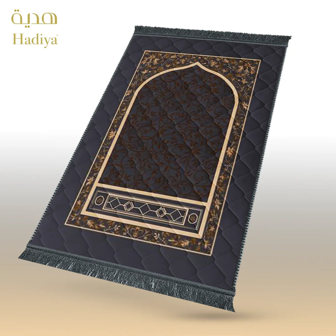 Made with soft and shiny mink fabric, this prayer mat feels smooth during sujood while providing gentle support. The 1-inch quilted padding ensures comfort without extra weight. Its waterproof back helps protect the mat on different surfaces, while the neat lace finishing adds a clean and elegant look.