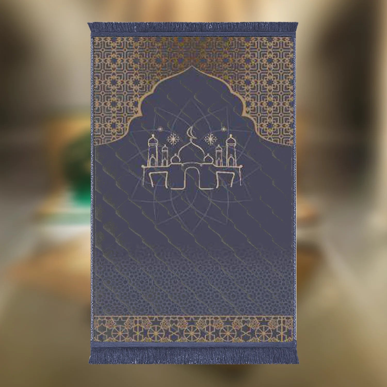Made with soft and shiny mink fabric, this prayer mat feels smooth during sujood while providing gentle support. The 1-inch quilted padding ensures comfort without extra weight. Its waterproof back helps protect the mat on different surfaces, while the neat lace finishing adds a clean and elegant look.