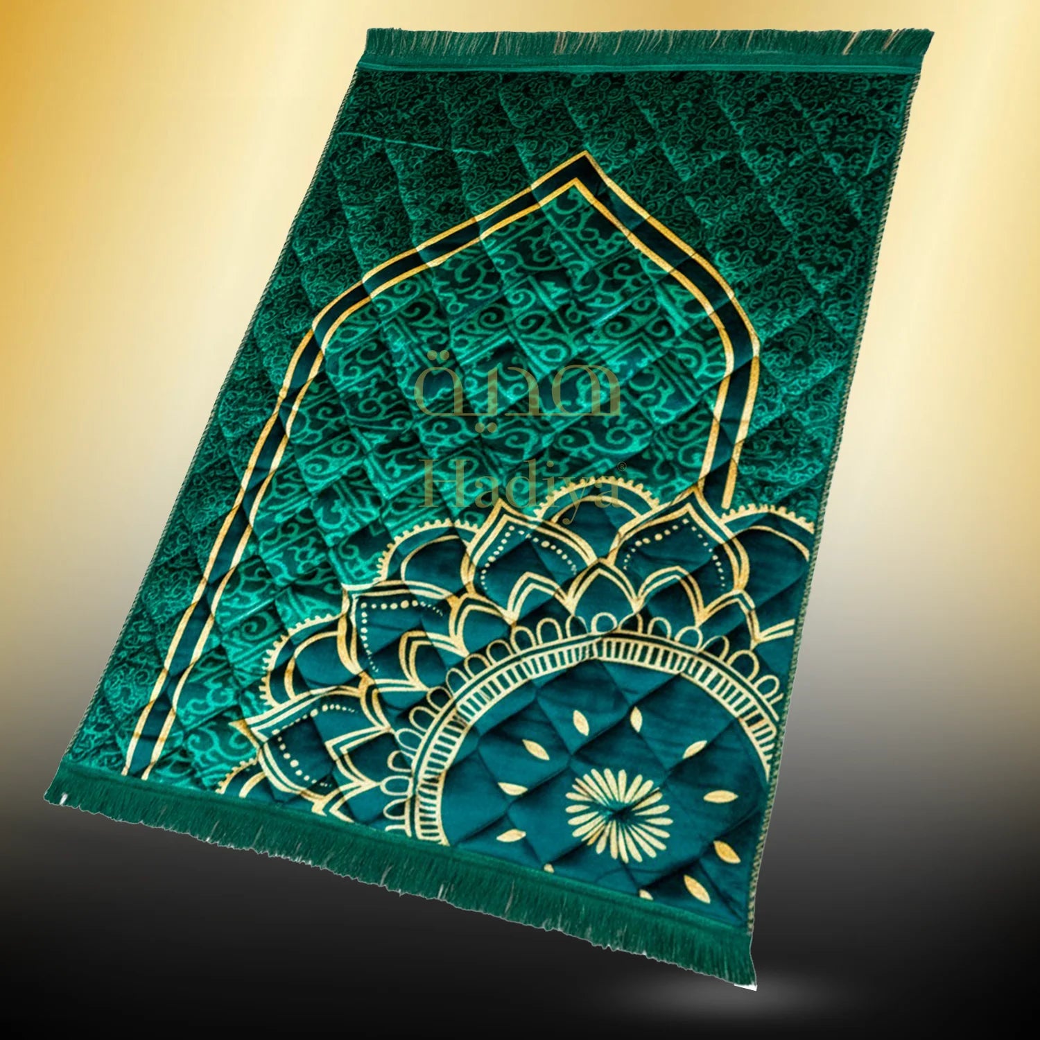 The Gold Series Prayer Mat is made for those who want comfort and support in every prayer. With a size of 80 × 120 cm and a thickness of 1 inch, it feels soft yet firm under your feet. The mat is made from super soft shiny fabric with natural filling of wool and cotton, giving it a cozy feel while staying durable. Weighing about 1.2 to 1.3 kg, it’s strong but still easy to move around. The mat is finished with lace and piping on all four sides and comes with a waterproof back, keeping it safe and long-lasting. Perfect as a luxury prayer mat for daily use or as a thoughtful gift.