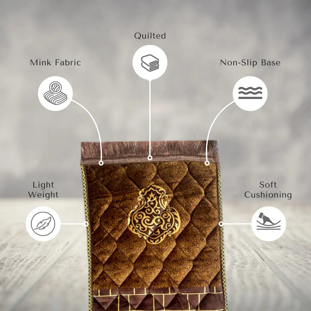 Extremely soft and fuzzy prayer mats, visually appealing Lightly padded, easily foldable and lightweight to carry. Made from premium quality suede velvet Gentle hand washing recommended