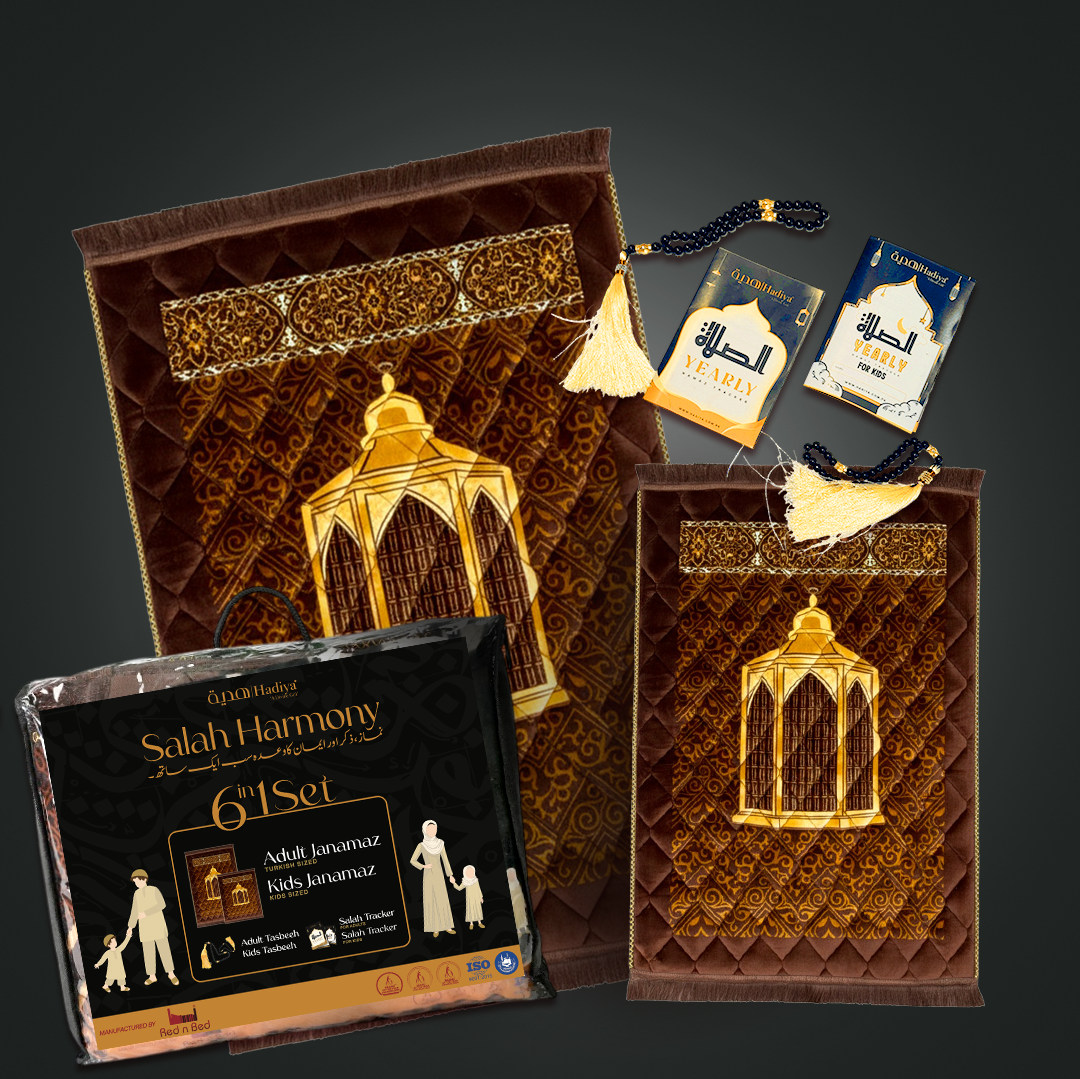 Discover Hadiya’s exclusive Salah’s first-ever complete prayer gift set, designed to bring families together in worship. Beautifully packed in a premium packaging, this set is a perfect blend of spirituality, elegance, and togetherness — created with love in Karachi by RednBed, the trusted name in luxury prayer mats.